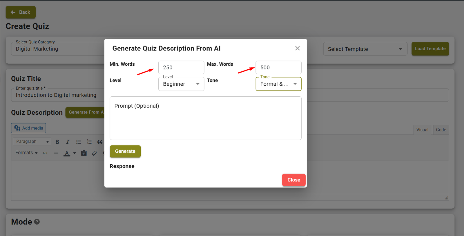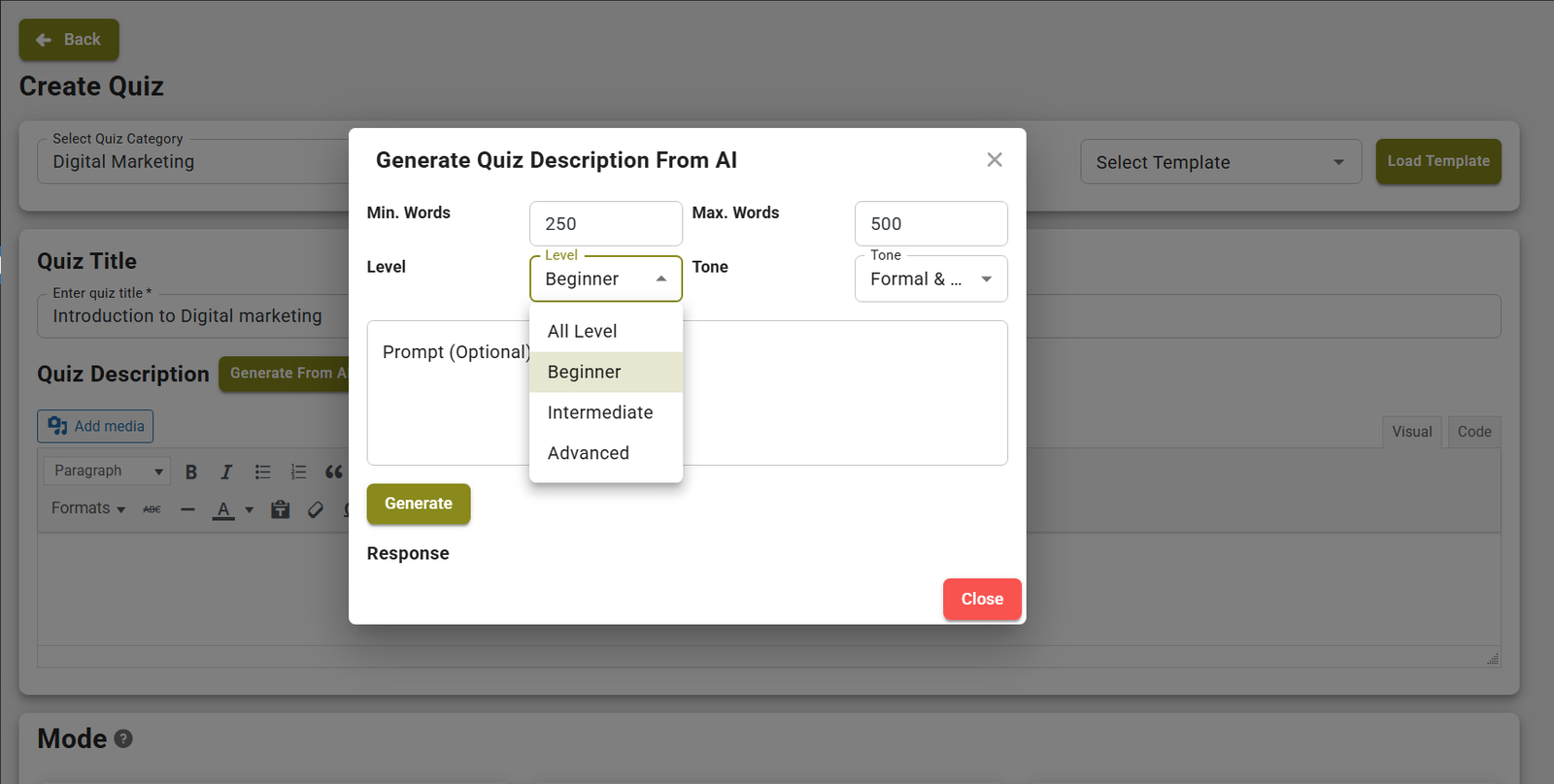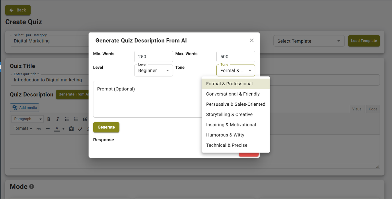 Set the AI Tone as per your Quiz’s requirement and click Generate button.