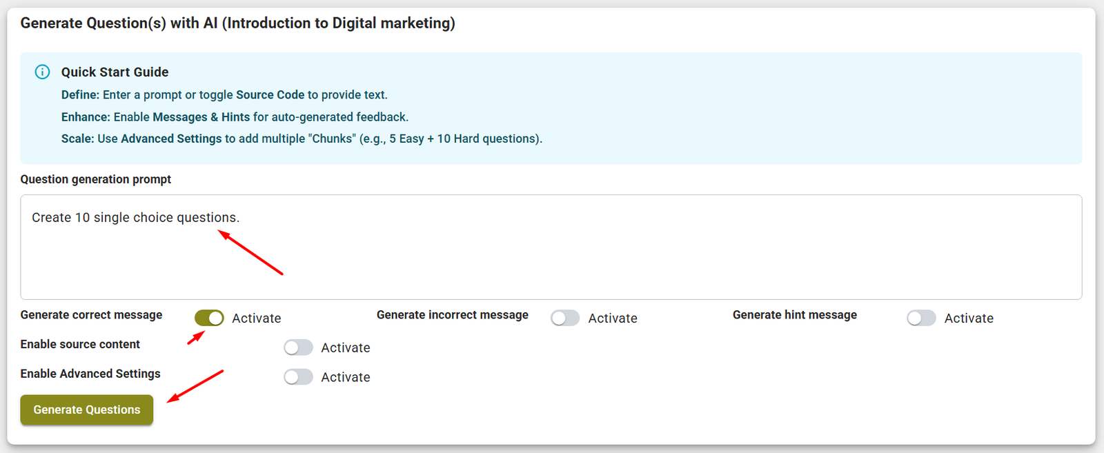 And click Generate Questions Button.