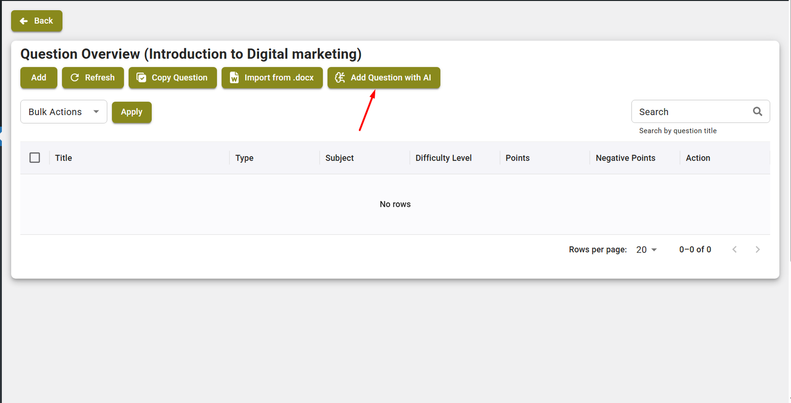 Click Add Question with AI button