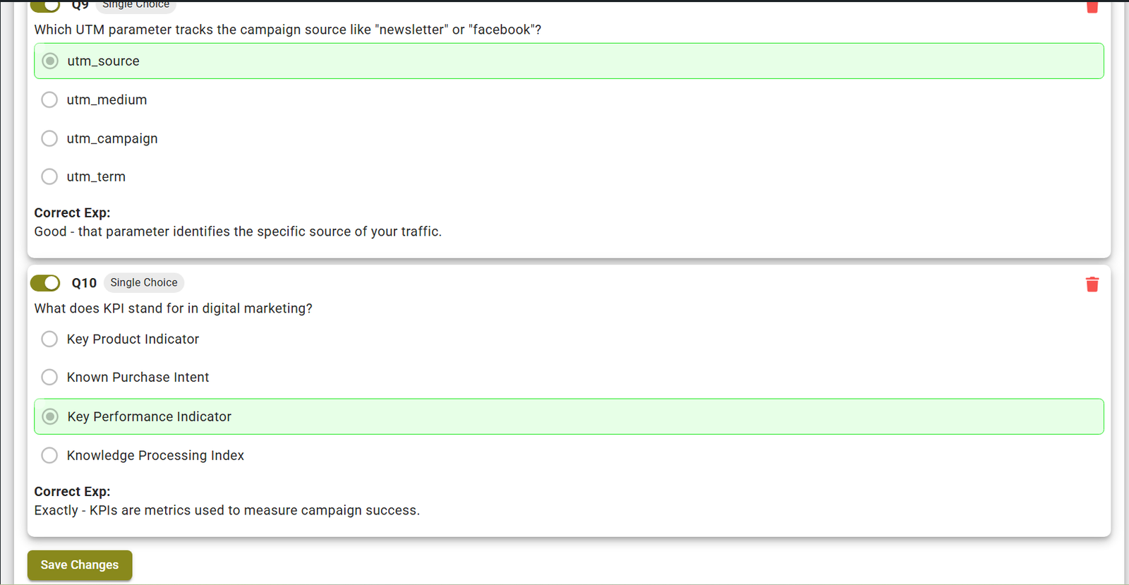 Review All the questions, select and click on Save changes button.