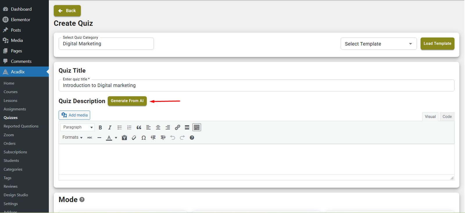 You can create a quiz description from AI in Acadlix by following these simple steps.