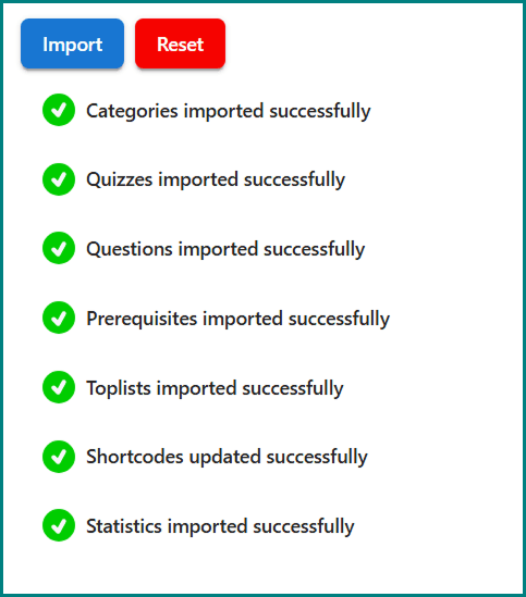 - Do not deactivate or delete the Wp Pro Quiz while the import process is running.