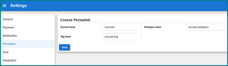 By default, you will get a course base set as courses. You can change this base as per your requirement. This will be the URL of your All courses page as well as the new courses URL will also follow this.