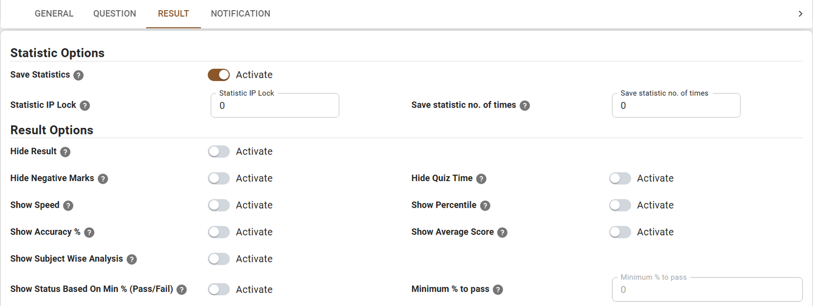 We know that the same result features are not always required. So we provided everything configurable per quiz. You can enable or disable the features as per the requirement on your WordPress exam website.