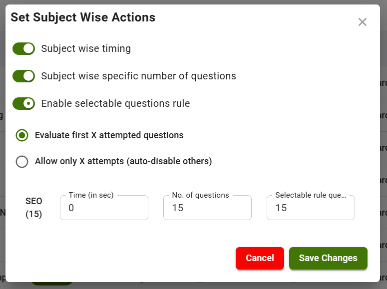 Acadlix’s Advanced Quiz mode supports various subject wise controls like